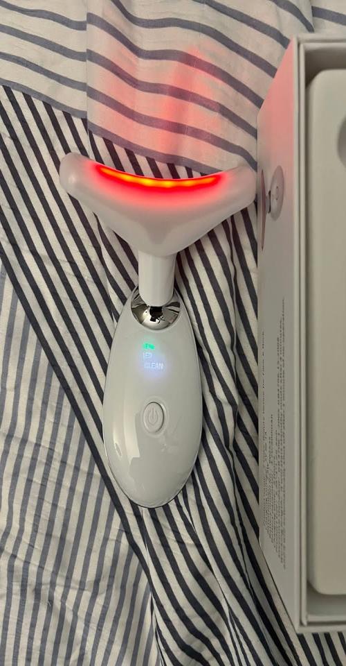 Never used it - Efficient Face Massager - With 113 degrees Fahrenheit heating, this facial massager will promotes better and faster absorption of skin so that it can soothe your skin, increase skin elasticity and softness, and maintain healthy glowing skin. It also has 7 different LED settings.